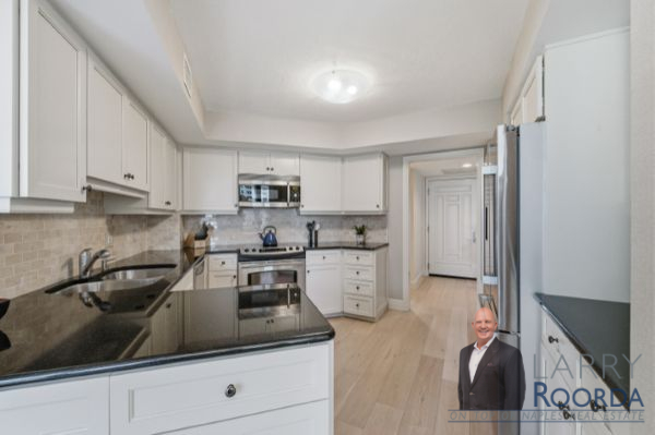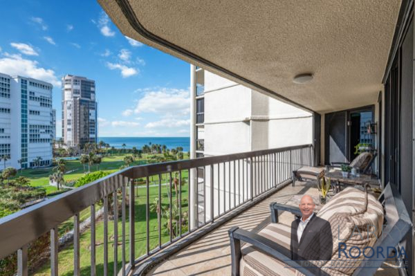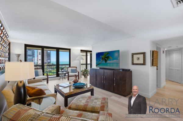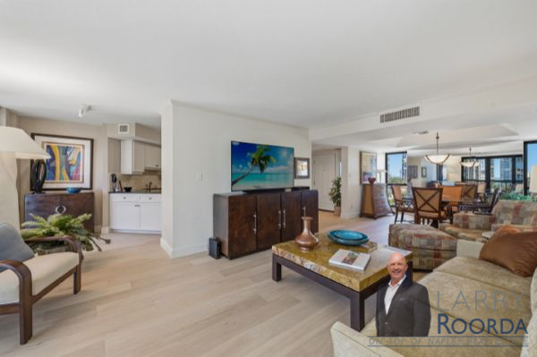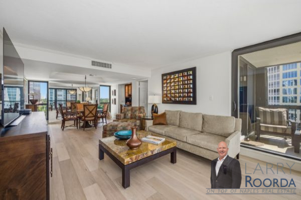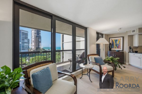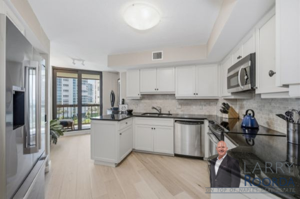 Experience breathtaking views of the Gulf of Mexico from the 7th-floor residence in the Esplanade Club of Park Shore. This home has been meticulously updated throughout, featuring newly added wood flooring, an elegant kitchen equipped with granite countertops, stainless steel appliances and under-cabinet lighting. Ample storage space, a bar in the living room, and a spacious open-air balcony are just a few other notable features. Both bedrooms have custom California walk-in closets and bathrooms, highlighting Cambria quartz countertops. Have peace of mind with hurricane-impact windows and sliders, along with accordion shutters for added protection. A lighted, covered deeded parking space is located on the first level of the parking garage. Renowned for its resort-style amenities, the Esplanade Club has a beachfront pool and spa, sun deck, sauna, outdoor kitchen and fireplace, and a newly updated social room with a full kitchen. Plus, for a more active lifestyle, there’s a fitness center, tennis, pickleball, shuffleboard and bocce ball courts. The Park Shore promenade – a private 1.3-mile paved path to stroll along the beach. The 24-hour lobby staff and onsite management are always there for any assistance. Owners can have a pet under 25 pounds and lease 4-times per year with a 90-day minimum. Conveniently located within walking distance of Venetian Village for upscale dining and shopping, rent a boat from the marina or buy/lease a slip from the yacht club.